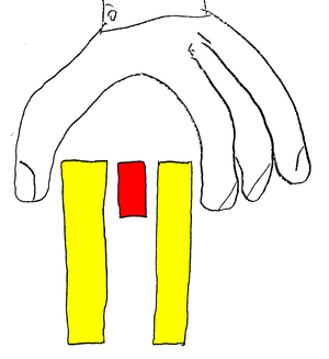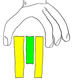 Ćwiczenie zaczyna się od tego, że uczestnicy ustawiają równolegle dwa klocki o długości 9 cm i wkładają między nie klocek o długości 6 cm: